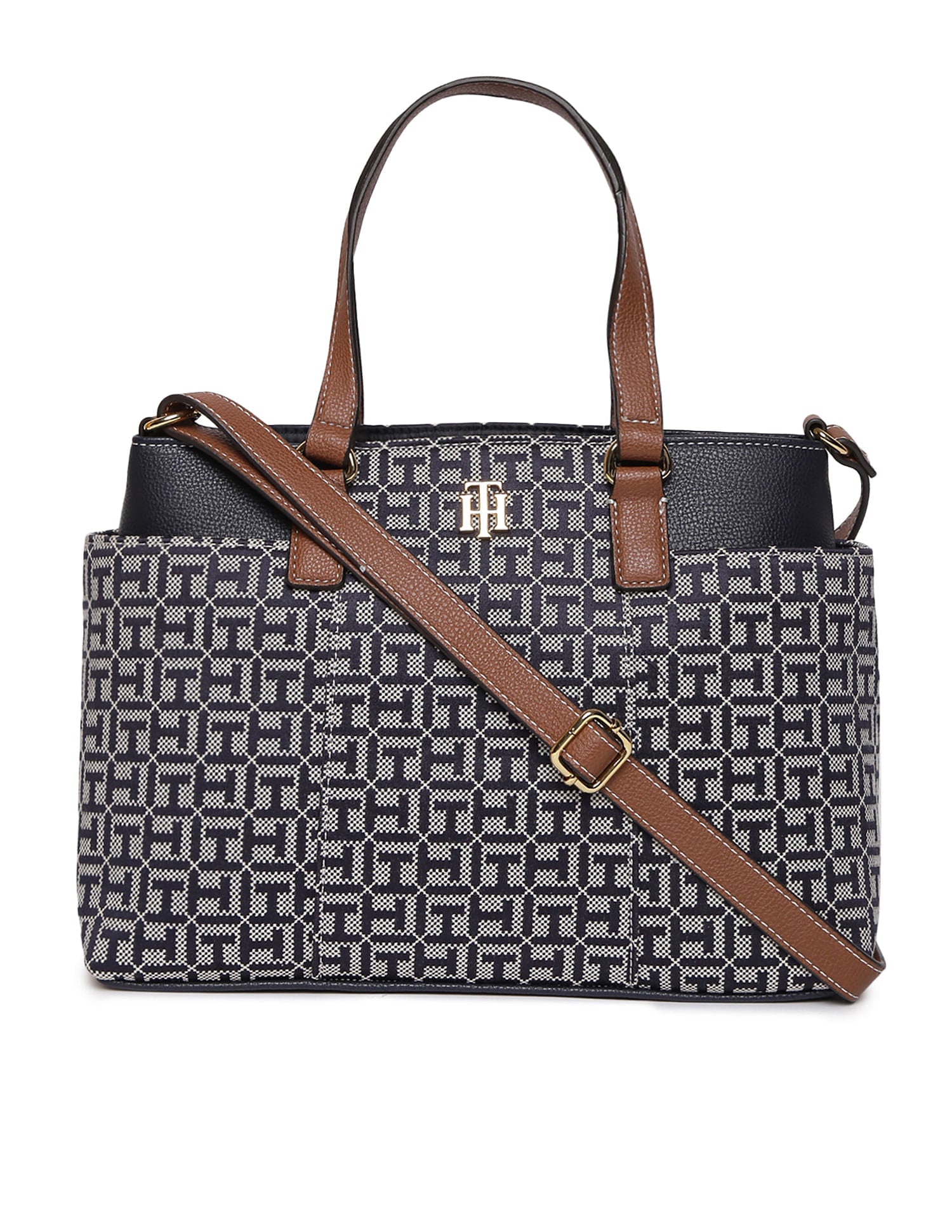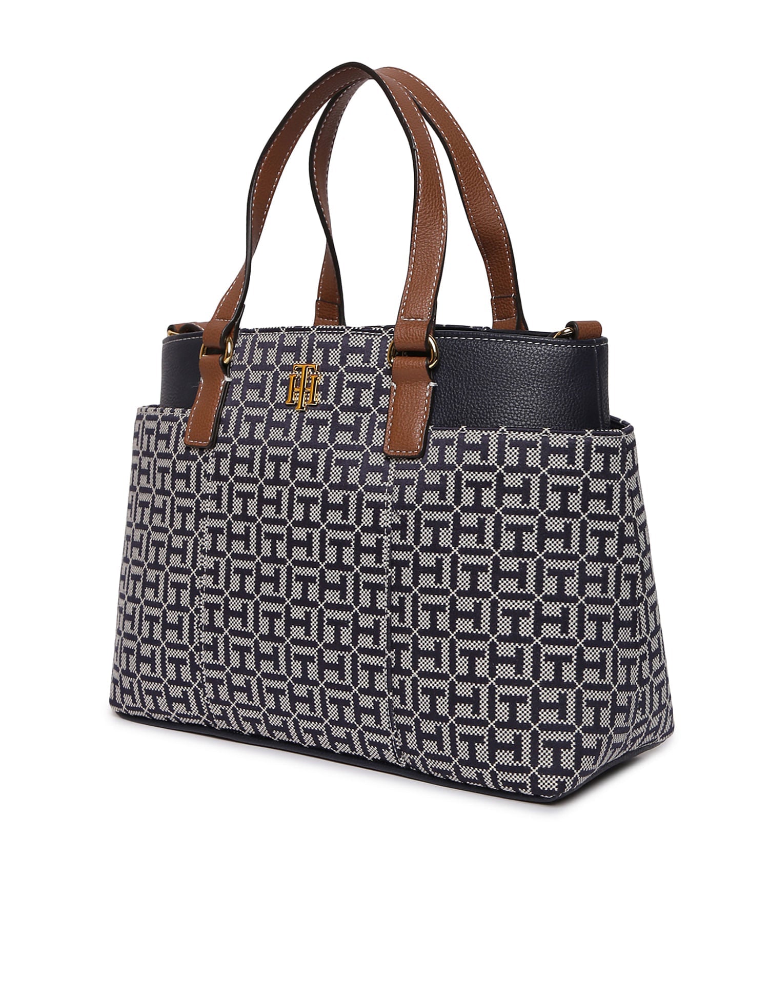 TOMMY HILFIGER Jacquard Monogram Satchel Handbag